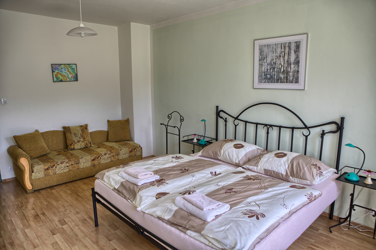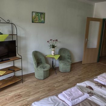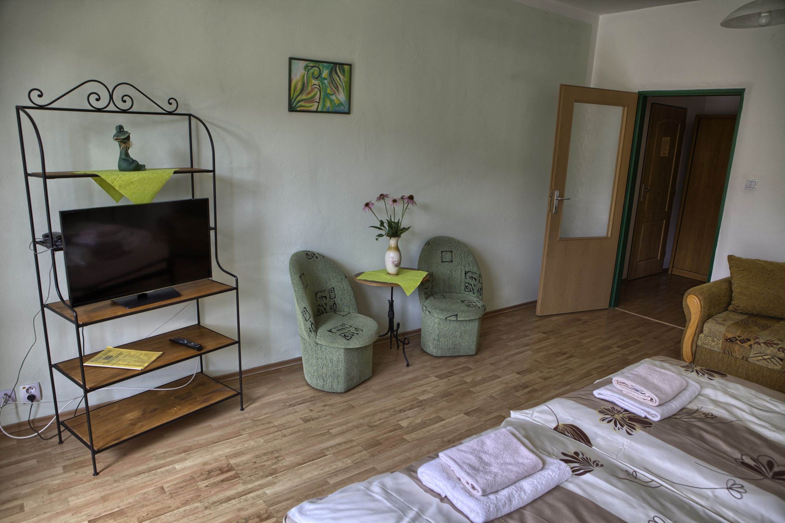 V našom penzióne na Vás čakajú pohodlné izby vybavené zaujímavým kovaným nábytkom s kompletným príslušenstvom (vlastné sociálne zariadenie - vaňa so sprchou, WC, TV SAT, telefón, WiFi internet). Niektoré izby majú balkón s výhľadom do krásnej veľkej záhrady a na okolitú prírodu, niektoré majú k dispozícii minichladničku a rýchlovarnú kanvicu. Parkovanie pri penzióne je bezplatné.
